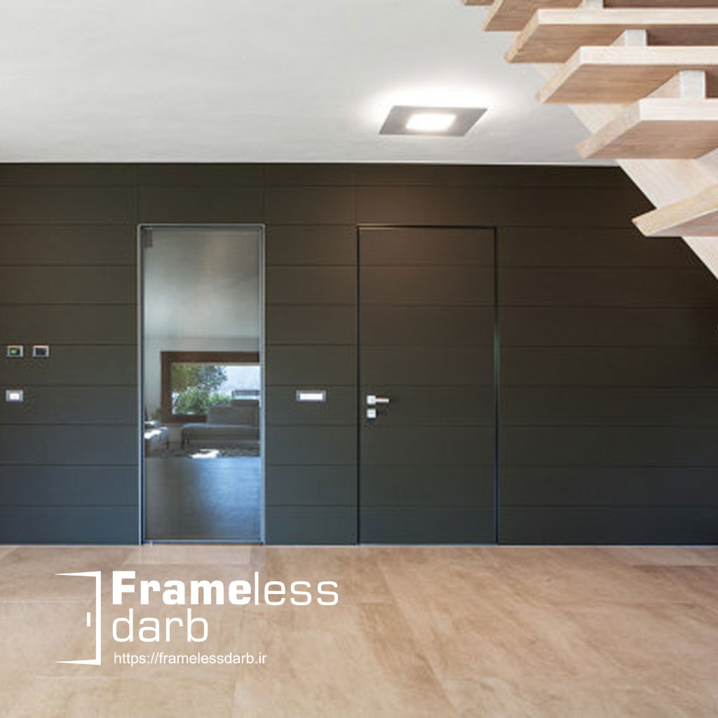 درب داخلی فریم لس به همراه ترمووود دیوارکوب